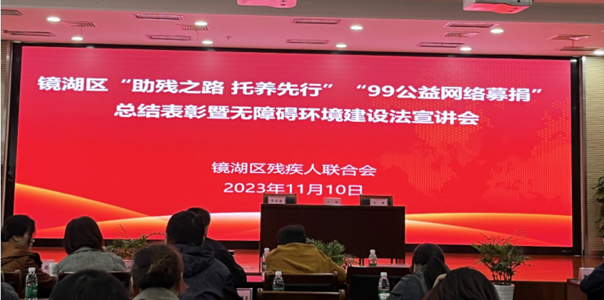 11月10日,镜湖区“助残之路 托养先行”项目“99公益网络募捐”总结表彰暨无障碍环境建设法宣讲会议在芜湖广济医院16楼一号会议室举行。区政府副区长方婷、各街道残联分管领导、工作人员、各相关企业、各相关部门分管领导等出席活动,安徽鲸统供应链科技有限公司应邀出席并接受表彰。